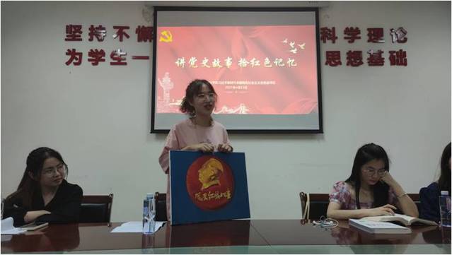 23日晚,在行政楼213开展的“讲党史故事,拾红色记忆”主题分享会上,读书社成员们结合自己专业的所思所感,从党史、新中国史到改革开放史和社会主义发展史,声情并茂地讲述了“革命先烈夏明翰”、“半条棉被”、“宁死不屈刘胡兰”、“人民公仆焦裕禄”、“红军‘挑夫’”、“红军炮兵连”“红色三明--风展红旗如画”、“红军女战士贾德福”等党史故事。活动中,2018级土木工程专业的张敏芳同学分享的“刘胡兰--怕死就不当共产党”让同学们深刻感受到革命烈士的忠贞之胆与不怕牺牲的决心和勇气;2019级美术学的李奥然同学则展示了奶奶所获得的荣誉奖章,深情分享自己的奶奶当年加入中国共产党时的难忘回忆;同样来自2019级美术学专业的张凝同学带来自创油画《风展红旗如画》,将油画背后的故事娓娓道来。精彩的分享让同学们备受鼓舞,更加深切地明白“中国共产党党员”这一身份的崇高和伟大。