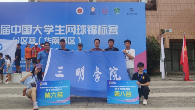 日前,第25届中国大学生网球锦标赛分区赛(华南赛区)举行,吸引了来自广东省、福建省和澳门特别行政区的25所高校的189名大学生网球运动员参赛。经过3天紧张而激烈的角逐,我校体育与康养学院7名学生(3女,4男;指导教师:秦德平、廖玉冰、马荣超)荣获女子团体第六名、男子团体第八名。