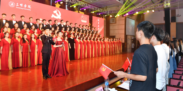 晚会作为庆祝中国共产党成立100周年主题系列活动的重要组成部分,旨在更好地引导广大师生坚定爱党信念,牢牢跟随中国共产党的领导,明确奋斗目标,秉承“明德 明理 明志”的校训精神,奋发图强、拼搏进取。为营造浓厚的宣传氛围,晚会现场还采取了线上同步直播,吸引众多师生参与互动,直播人气高达4000余人。