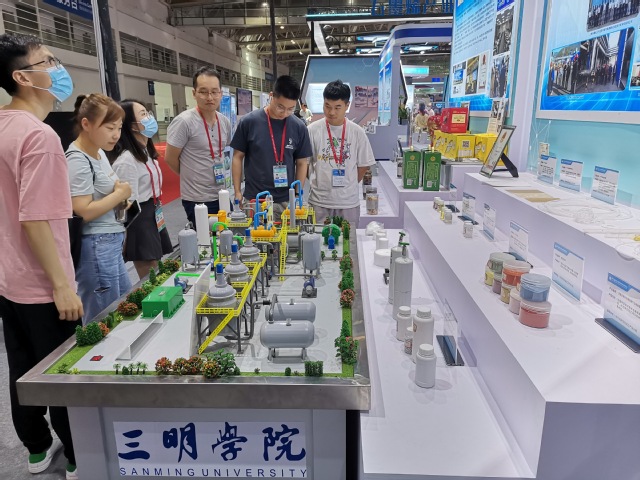 在“智能制造”展区,氟化工产业分院展出了与三明海斯福化工有限公司联合开发的“含氟多氧杂羧酸表面活性剂”科研成果产业化工艺模型,该模型动态完整模拟了含氟多氧杂羧酸表面活性剂工业生产过程,为相关企业职工技术培训和yl6809永利官网专业人才培养提供极佳的实训案例,该项技术获2018年福建省科技进步三等奖。此外,还展出了与三明氟新材料相关企业联合开发的对氟苯酚、聚四氟乙烯分散树脂、氟碳彩砂、水溶性含氟流平剂等系列产品,吸引了各级领导、媒体、专家、企业家及群众驻足观看并参与技术交流。展会期间,省发改委从20多家参展的产业分院中遴选2家举办了专场项目对接签约活动,其中氟化工产业分院与福建三农新材料有限公司等企业签订了4项合作协议,为下一步更好地开展校企合作和产学研深度融合起了很好的开端。20日下午,海创会组委会办公室在会展中心馆举行第十九届海创会闭幕式暨颁奖典礼,协同创新院氟化工产业分院因表现突出受到组委会办公室的认可,获评“优秀组织奖”。