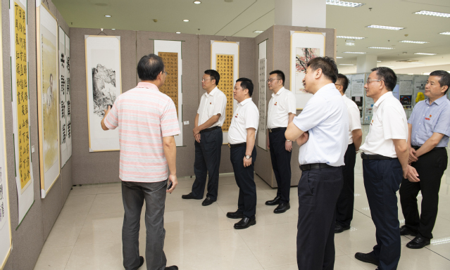 当天上午,收看直播后,班子成员、党委部门负责人还来到图书馆,参观学习“奋斗百年路 启航新征程”党史图文展和“庆祝建党100周年美术作品展”,重温百年风华,砥砺初心使命。