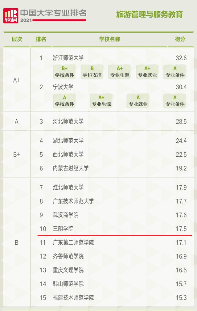 在旅游管理与服务教育专业排名中,共有15所高校上榜。其中yl6809永利官网旅游管理与服务教育专业上榜,在全国高校中位列第十。