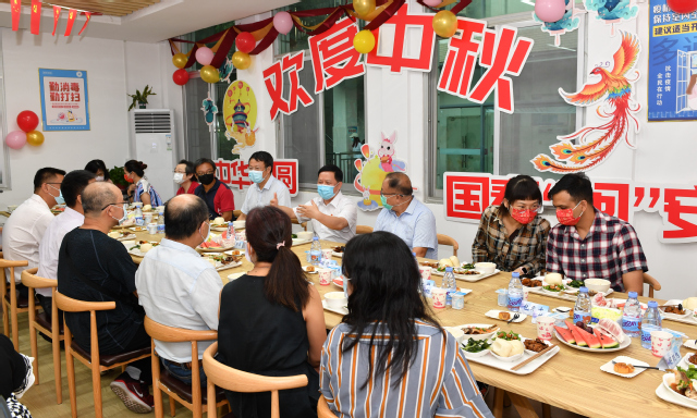 少了小家欢聚,多了大家团圆。中秋当天,三个时段,校领导分别与联培研究生、科研引进生及家属、台湾教师茶话餐叙,并前往学校北大门、派出所、校医院、南区学生活动中心,看望抗疫一线工作人员,团圆一家亲,共话家国情。