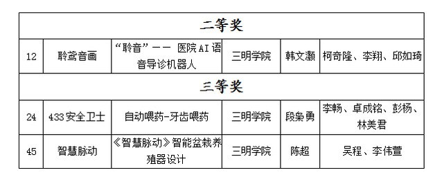 中美青年创客大赛是由中华人民共和国教育部主办的一项国际性赛事。大赛通过比赛的形式促进中美两国创客文化与生态的建设,助力中国创客创新社区及众创空间生态环境的不断优化,并充分体现中美人文交流特色,为两国青年搭建交流沟通的平台;推动中美两国青年创客在创新领域的深度交流,进而加强两国在青年层面的交流与沟通,已经成为中美社会和人文对话的品牌活动之一。本次选拔赛共有来自77所学校的1590名选手、360个团队报名参赛,提交项目196个。我校选送的《“聆音”—— 医院AI语音导诊机器人》(聆鸢音画团队)荣获二等奖,《自动喂药-牙齿喂药》(433安全卫士)、《<智慧脉动> 智能盆栽养殖器设计》(智慧脉动团队)和《绿色三明AIOT智慧康养系统》(一指禅观光团团队)荣获三等奖。