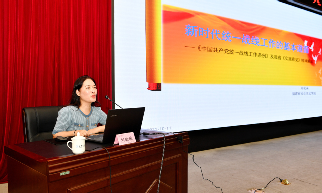 10月11日下午,校党委理论学习中心组召开扩大学习会,邀请省社会主义学院刘晓楠教授就贯彻落实新修订的《中国共产党统一战线工作条例》和福建省委《关于贯彻〈中国共产党统一战线工作条例〉的实施意见》作专题报告,全体校领导参加学习会。
