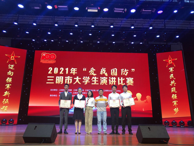 10月15日,由三明市委宣传部、三明市教育局、三明市退役军人事务局、三明军分区政治工作处、共青团三明市委、三明市国防教育办公室联合举办的2021年“爱我国防”三明市大学生演讲比赛在三明市水利电力职业技术学院落下帷幕,我校参赛选手荣获一、二等奖的好成绩。