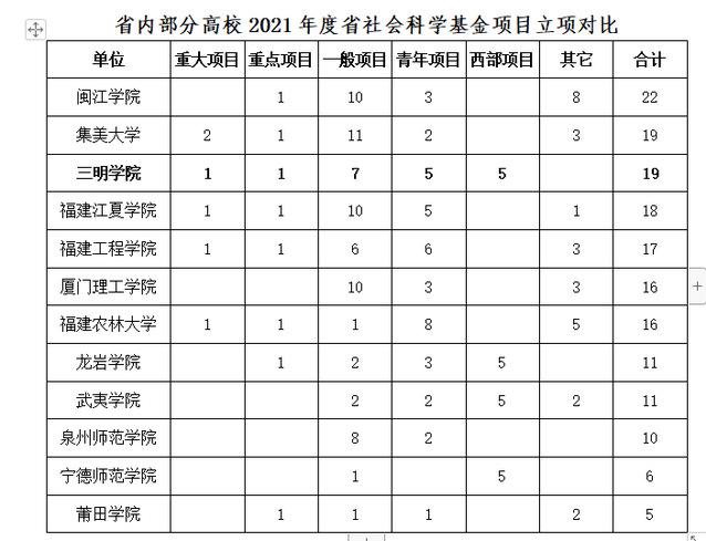 继国家社科基金立项创历史最好成绩之后,我校社科研究再传捷报!10月26日,福建省社会科学规划办公室公布2021年度社科基金重大项目(第一批)、社会科学基金项目立项名单,我校19项课题获得立项,其中重大项目1项、重点项目1项、一般项目7项、青年项目5项、西部项目5项,创历史新高,居省内同类高校前列,立项数同比去年增长137.5%。