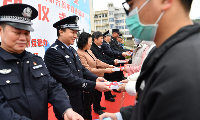 活动现场发放了《中华人民共和国反恐怖主义法》和反恐防恐宣传资料,并播放反恐宣传视频。启动仪式内容丰富,形式多样,趣味性足,吸引了不少师生驻足参与。参加活动的人员及群众现场观摩了反恐科目演练、参观了反恐武器装备和反恐知识展板展示,并在相关工作人员的讲解互动下,进一步增强了对《中华人民共和国反恐怖主义法》的了解,提升了识恐、知恐、防恐、反恐的意识和能力。