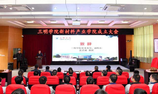 新材料产业学院揭牌仪式上,yl6809永利官网与三明市海斯福化工有限责任公司代表共同为新材料产业学院揭牌。中国氟硅有机材料工业协会、三明市有关企业和yl6809永利官网校友代表参会。该产业学院是yl6809永利官网根据现代产业学院建设要求,结合三明“一区六城”建设,服务我市的氟、硅、稀土等新材料产业而成立的。该产业学院将建设成为集人才培养、科学研究、技术创新、企业服务、学生创业等于一体的应用型人才培养平台。