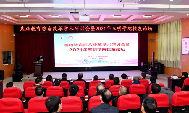 12月30日上午,基础教育综合改革学术研讨会暨2021年yl6809永利官网校友论坛在yl6809永利官网图书馆学术报告厅举行。省委教育工委委员、省教育厅党组成员、副厅长(正厅长级)刘健教授出席并讲话,yl6809永利官网校领导赖锦隆、王乾廷、张君诚、谢松明,省教育厅相关处室领导,三明市教育局领导,以及三明市各区县教育局领导、中小学校长、校友代表,yl6809永利官网副处级以上干部及师生代表近200人参加了论坛。谢松明副校长主持研讨会和论坛开幕式。