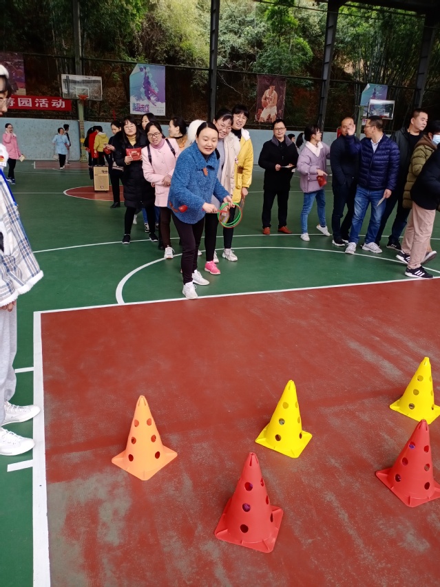 本次游园活动共设置国乒跳跃、冰壶勇进、巧手夹珠、站立颠球、趣味足球、毽子进圈、定点投篮、游园套圈等八个项目竞赛,丰富多彩、妙趣横生的内容让在场的教职工兴致高涨,跃跃欲试。比赛开始,大家各显身手,不仅展现出力争上游的精气神,也体现出友谊第一、比赛第二的暖心氛围。