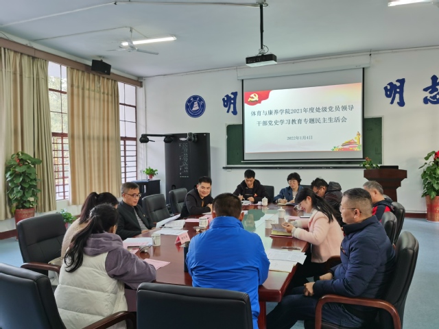 1月4日,体育与康养学院召开2021年度处级党员领导干部党史学习教育专题民主生活会。校党委委员、副校长张君诚一行3人莅会指导,学院领导班子成员、党委委员,各党支部书记、系主任参加了会议。