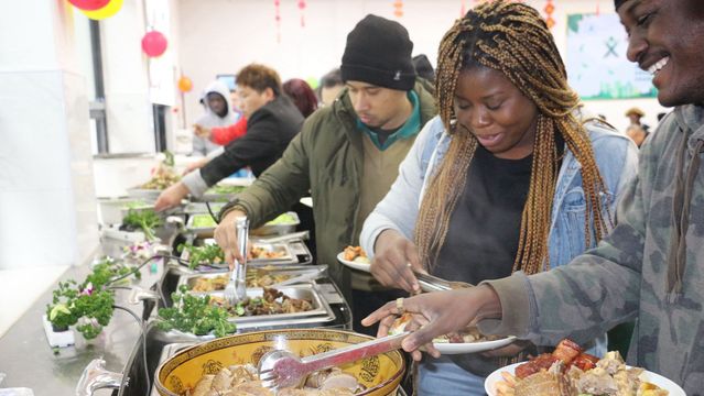 “老师同学们,过年好,给大伙儿拜年啦!”校领导走进餐厅,向留学生、台湾教师等留校师生致以新春问候,并与大家共同品尝丰盛美味的年夜饭。大家边吃边聊,畅谈各地习俗,分享日常点滴,互致真挚祝福,现场笑声不断,欢乐喜庆祥和。大家纷纷感谢学校的关心关怀,表示将在新的一年里勇毅笃行,虎虎生威,干出虎跃龙腾的新成绩。