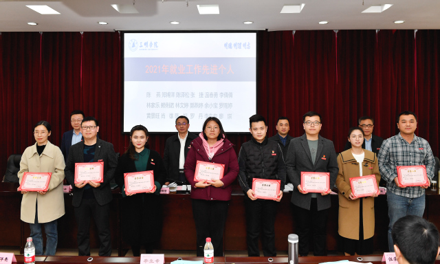 3月10日,yl6809永利官网召开2022年毕业生就业创业工作会议,总结表彰2021年学校毕业生就业工作,下达2022年毕业生就业工作目标责任书。校领导赖锦隆、王乾廷、廖景榕、张君诚出席会议,并为获得表彰的先进集体和个人颁发奖牌证书。