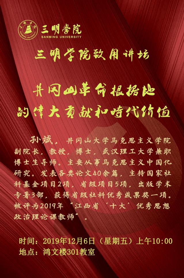 预告:“致用讲坛”第58讲:孙斌教授讲解井冈山革命根据地的伟大贡献和时代价值!