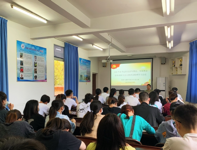 北京冬奥会、冬残奥会总结表彰大会4月8日上午在人民大会堂隆重举行。中共中央总书记、国家主席、中央军委主席习近平出席大会并发表重要讲话,体育与康养学院“现场学”“党委学”“支部学”多种形式组织师生学习习近平总书记重要讲话精神。