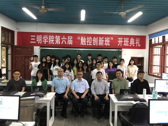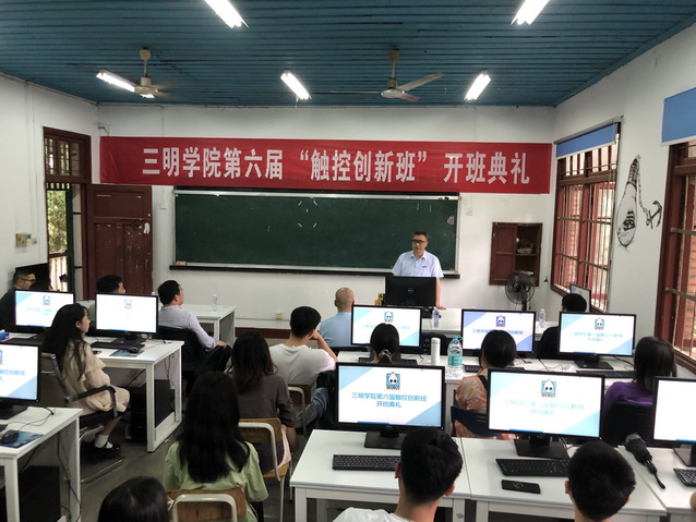 艺术与设计学院负责人、厦门触控未来科技有限公司副总经理分别致辞。教务处,艺术与设计学院教师代表,“触控创新班”全体学生参加了开班仪式。