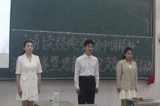 为喜迎党的二十大召开,提升学生的爱党爱国情怀, 4月27日,文化传播学院播音与主持艺术学学生党支部在鸿文楼301举办“诵读经典,弘扬中国精神”经典朗诵比赛。