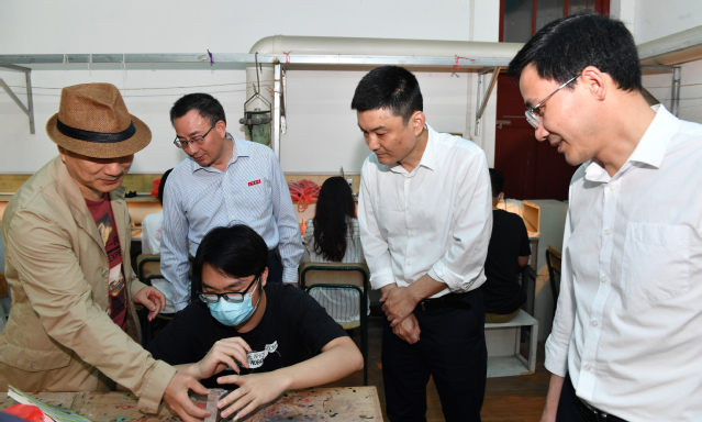 座谈会前,赵明一行在赖锦隆书记的陪同下,参观了跨专业综合实训室和国家级众创空间等校园教学科研场所。