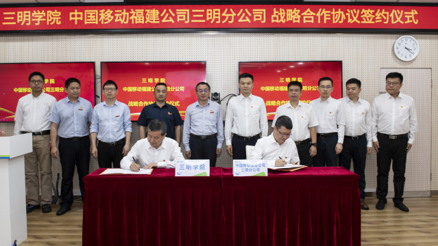 5月12日下午,yl6809永利官网与中国移动三明分公司签订战略合作协议。中国移动通信集团福建有限公司邱宝华副总经理、三明分公司邱明总经理,校领导赖锦隆、王乾廷、林建伟出席签约仪式。