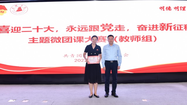 165个视频作品线上PK、23组青年师生线下对决......5月25日,yl6809永利官网“喜迎二十大、永远跟党走、奋进新征程”主题微团课大赛落下帷幕。这场历时四个月,吸引全校近五成班级团支部参与的活动,备受师生瞩目。决赛现场,校党委副书记廖景榕与组织部、宣传部、学工部等相关部门负责人、二级学院党委副书记、校院团干部及学生代表共同观看比赛并参与评审。23组选手分教师组和学生组两个赛道进行了精彩展示。