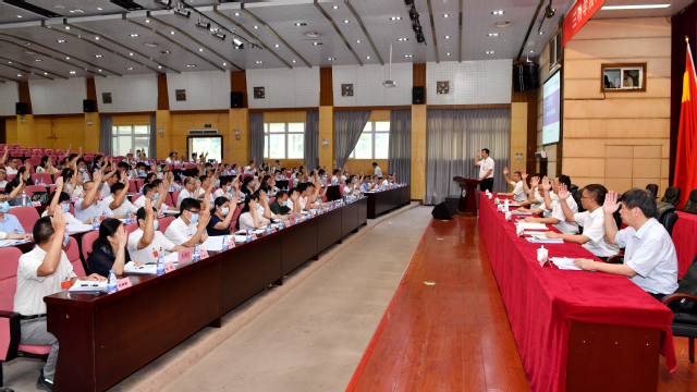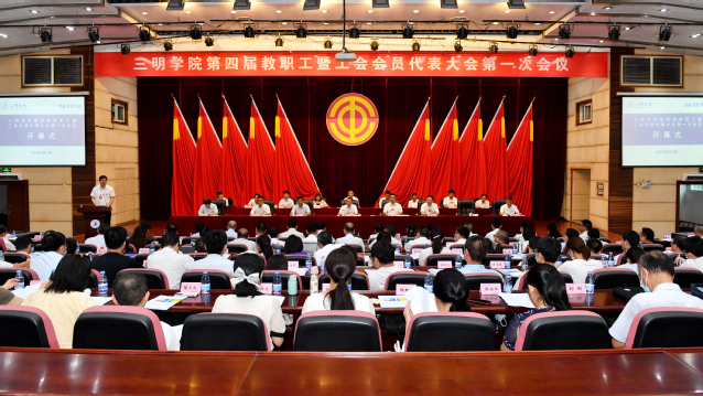 6月28日下午,yl6809永利官网第四届教职工暨工会会员代表大会第一次会议在学术报告厅隆重召开。校领导赖锦隆、王乾廷、廖景榕、张君诚、吴龙、谢松明、林建伟,市总工会党组成员,副主席、经审办主任李伸安,“双代会”正式代表、列席人员近200人参加会议。