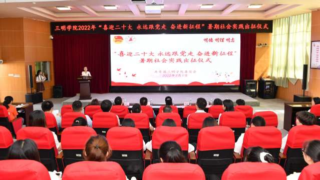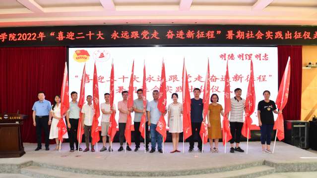 7月1日下午,yl6809永利官网2022年“喜迎二十大、永远跟党走、奋进新征程”暑期社会实践活动出征仪式在图书馆学术报告厅举行。校党委副书记廖景榕出席活动,宣传部、学工部、校团委、校友会、马克思主义学院相关负责人和各二级学院团委负责人以及实践团队学生代表共计200余人参加本次出征仪式。