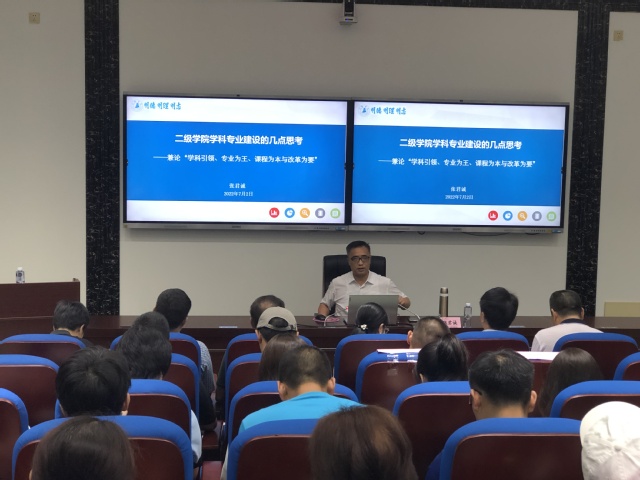 7月2日下午,张君诚副校长在靖远楼101教室为体育与康养学院、教育与音乐学院开设《二级学院学科专业建设的几点思考——兼论“学科引领、专业为王、课程为本与改革为要”》专题辅导报告。