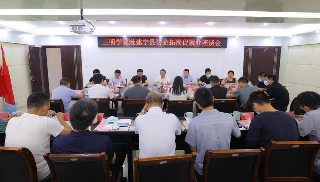 校党政办、组织部、学生处、校友会,建宁县经济开发区、工信局、发改局、人社局、教育局、人才办负责人及企业代表参加调研活动。