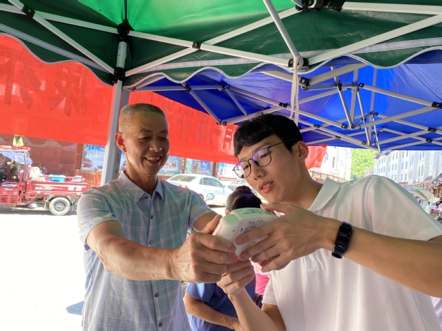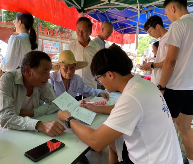 廖景榕副书记一行首先来到实践队在青水畲族乡中心街道设立的“体质健康监测和康养DIY项目”服务点,体验了体质健康监测和康养项目,对实践队的服务给予肯定。廖副书记希望实践团队师生要在实践中强化使命担当,把学到的理论知识和地方需求紧密结合起来,要利用专业知识服务更多的群众,为健康中国建设贡献青春力量。