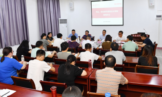 9月5日,yl6809永利官网马克思主义学院根据相关文件精神,组织本学期“习近平新时代中国特色社会主义思想概论”课程集体备课会。校党委书记赖锦隆、校长王乾廷、党委副书记廖景榕、副校长张君诚,以及马克思主义学院负责人、“习近平新时代中国特色社会主义思想概论”课程教师参加备课会。