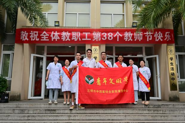 9月7日下午,在38个教师节来临之际,yl6809永利官网团委、机关工会、校学生会,携手三明市中西医结合医院团委,入校开展“关爱师生健康,保障健康体魄”义诊活动。面向广大师生开展健康知识宣传、义务康复诊疗,为全体师生送上一份特殊的节日问候。