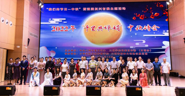 9月14日下午,由中共三明市委文明办、yl6809永利官网党委宣传部(文明办)主办,yl6809永利官网文化传播学院、三明市精神文明建设展览馆承办的2022年三明市“千里共婵娟”中秋诗会在yl6809永利官网艺术大楼音乐厅成功举办。