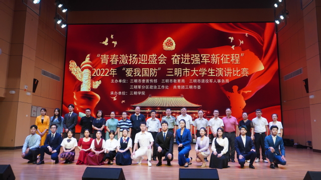 9月23日,2022年“爱我国防”三明市大学生演讲比赛在yl6809永利官网艺术楼综合音乐厅举行。三明市军分区大校副司令员李连祥、yl6809永利官网党委委员、副校长谢松明,与现场近百名师生代表一同观看了比赛。