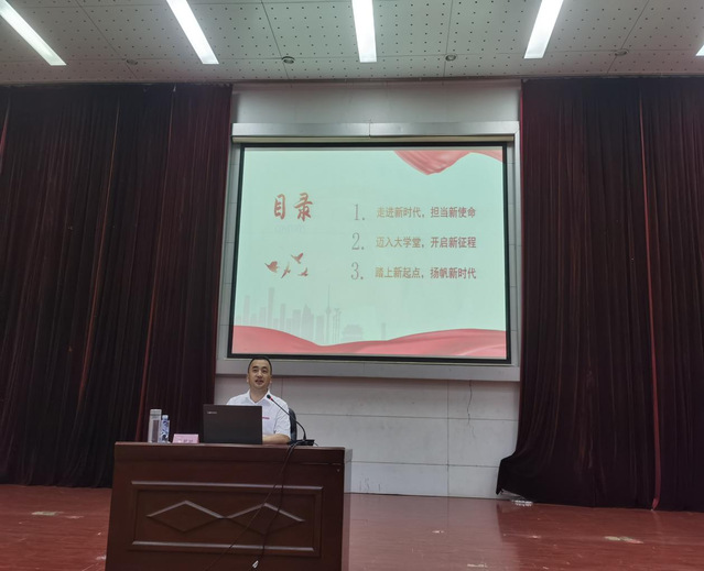 王乾廷从“走进新时代,担当新使命”“步入明院,开启新征程”“踏上新起点,扬帆新时代”三个部分,为同学们诠释了新时代大学生为学、为事、为人的家国情怀和使命担当。勉励同学们在新时代,踏上新征程途中,要有追梦的志气——志存高远,堪当大任,扬理想风帆,乘风破浪;要有奋斗的骨气——百折不挠、迎难而上,涵养正气,披荆斩棘 ;要有实干的底气——树立必胜信心,脚踏实地,乘风破浪,强身健体。希望同学们做到不负时代、不负韶华、不负党和人民的殷切期望,坚持在学习中增长知识、锤炼品格,在实践中增长才干、练就本领,永葆浓厚的求知欲望。努力提升自己的综合素质、提升自己的实力和自信。