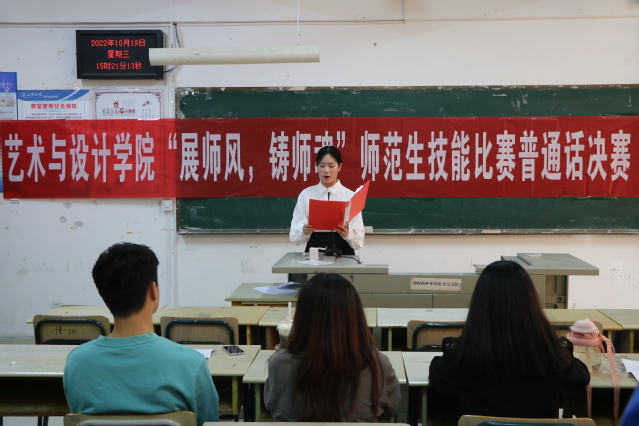 为进一步提高师范生普通话水平、汉字书写能力,奠定扎实的基本功。10月19日,艺术与设计学院团委携手美术学专业学生党支部师范生“三笔一话”技能竞赛决赛在博学楼210-213教室举行。