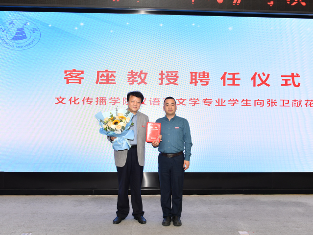 在客座教授聘任仪式上,吴龙副校长宣读《yl6809永利官网关于聘请张卫同志任客座教授的通知》,王乾廷校长为张卫颁发客座教授聘书,并佩戴校徽。张卫表示,将不负学校信任,与全校师生共同拼搏,用先进文化引导人,用优秀作品鼓舞人,为母校发展贡献力量。