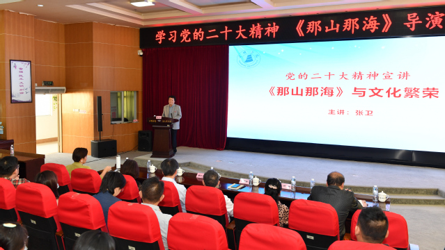 聘任仪式结束后,张卫结合电视剧《那山那海》的制作及自身经历,为大家带来了“党的二十大精神宣讲——《那山那海》与文化繁荣”的专题辅导。张卫从“思想”“民族”“情感”“传播”“山海”五种力量多角度讲述了在党的富民政策指导下,观风寨三兄弟带领畲族同胞创造美好生活,展现了在中国共产党的领导下,中国人民摆脱贫困、实现乡村振兴、走向共同富裕道路的伟大实践。张卫的报告主题鲜明、内容丰富、深入浅出,增进了在场师生对党的二十大报告中“繁荣发展文化事业和文化产业”的理解,提高了思想认识。