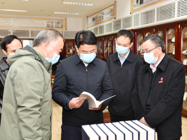 调研中,市领导一行先后参观了文化传播学院实验室、明日明月综合馆、图书馆、马克思主义学院等,详细了解学校在地方文化研究、古籍保护、人才培养、学科建设等工作情况。