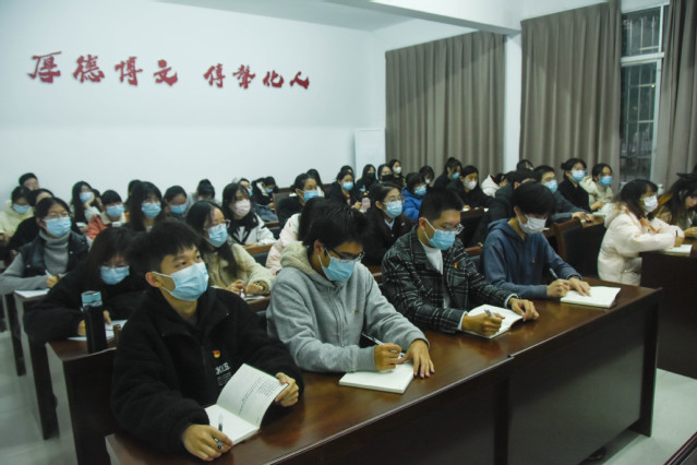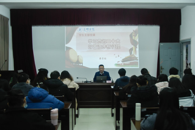 12月7日下午,校党委副书记廖景榕以《学习贯彻二十大,昂首迈步新征程》为题为文化传播学院汉语言文学专业学生第一、二党支部讲授专题党课。