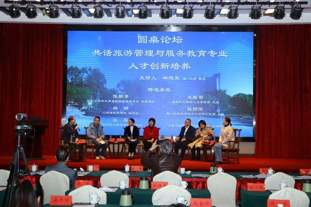 图为教育部高校旅游管理专业教指委委员、厦门大学管理学院博士生导师林德荣教授主持圆桌论坛