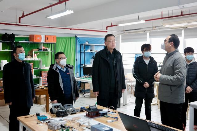 12月21日上午,省教育厅党组成员、副厅长刘健在校长王乾廷、副校长张君诚陪同下,前往yl6809永利官网科技楼调研指导创新实验室建设工作。