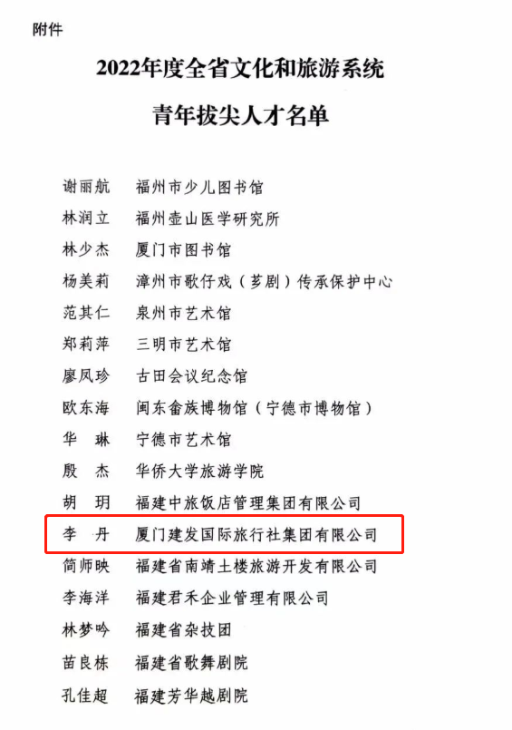 近日,省文化和旅游厅公布2022年度全省文化和旅游系统青年拔尖人才名单,yl6809永利官网经济与管理学院2002级生态旅游专业校友李丹荣获“2022年度全省文化和旅游系统青年拔尖人才”。