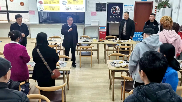 “过年好,给大伙儿拜年啦!”校领导向留校师生致以新春的问候和祝福,与大家亲切交谈,祝福大家在新的一年平安健康快乐、学业事业进步。并叮嘱大家合理安排假期生活,在学校度过一个欢乐祥和的春节,以良好的精神状态迎接新一年到来。