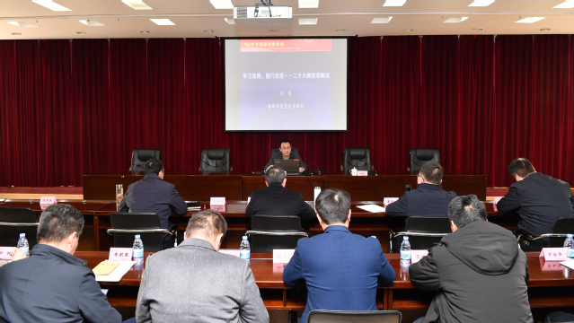 刘明教授从修改准备和经过、新增亮点、全面从严治党背景下践行党章等三个方面,详细阐述了党章的修改历程和修改重点,分析了党章的历史意义及内涵体现。他指出,党章是党的总章程,对坚持党的全面领导、推进全面从严治党、加强党的建设具有根本性的规范和指导作用。全面从严治党背景下践行党章,就是把党章中的各项规定落实到唤醒和树立党章意识、坚定理想信念、加强党性修养、增强纪律意识规矩意识、强化权力制约监督,以及加强以党章为根本、以民主集中制为核心的党内法规制度体系建设等方面,真正做到内化于心、外化于行。刘明教授的报告脉络清晰、重点突出、切合实际,既有政治高度、理论高度、思想高度,又有针对性、指导性和实效性,对深入学习宣传贯彻党的二十大精神具有重要指导意义。