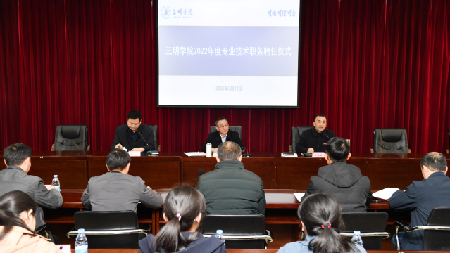 2月22日,yl6809永利官网在行政楼八楼举行了2022年度专业技术职务聘任仪式。校党委书记赖锦隆,校长王乾廷,副校长吴龙,相关部门、二级学院院长及全体受聘人员参加了聘任仪式。