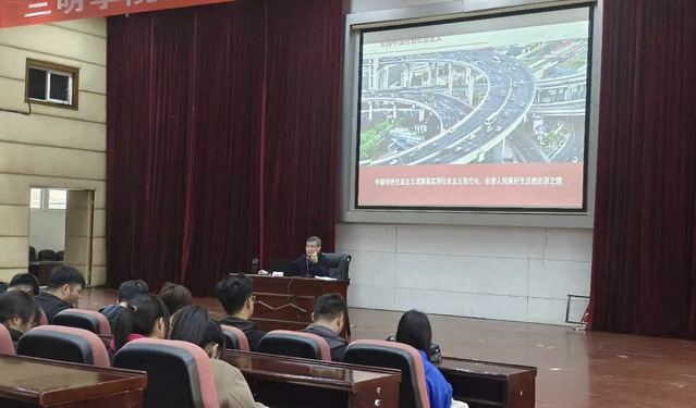3月23日下午,校党委委员、副校长谢松明教授以《走好中国式现代化之路》为题,在靖远楼101教室为建筑工程学院、经济与管理学院学子上了一堂生动的思政课。
