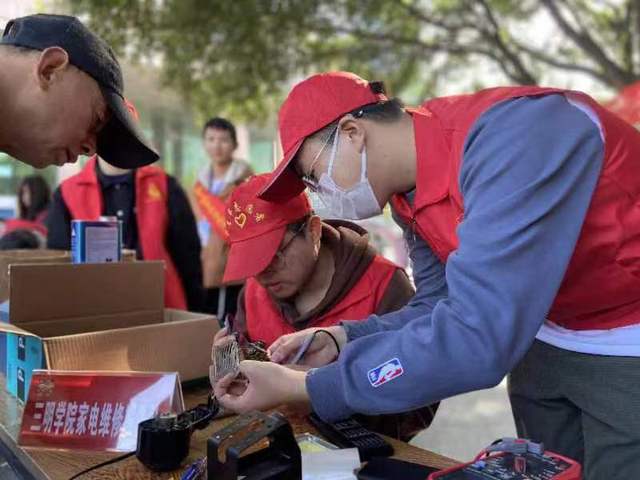 活动现场,校团委还组织3支品牌志愿服务队40余人开展便民志愿服务活动。“一路阳光”学雷锋志愿服务队陪伴儿童绘画、捏软陶,绘雷锋形象,弘扬雷锋精神。体育与康养学院体适能监测志愿服务队为居民讲解体康融合知识,提供免费体适能测试、开具运动处方、进行康复性推拿等服务;机电工程学院家电维修服务队,为居民提供免费电器维修服务,提供生活便利。便民服务得到居民的一致好评,纷纷加入其中。