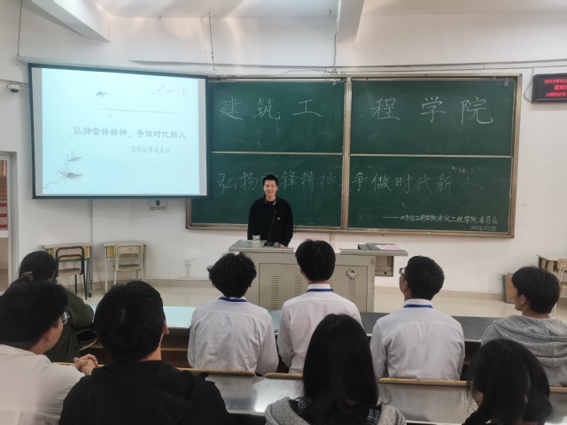 建筑工程学院积极开展向“雷锋同志学习”主题团课活动,班级团支书带领团员认真学习雷锋精神,开展“雷锋故事我来讲”活动,讲好雷锋故事,分享新时代的活雷锋,让雷锋精神活跃在新时代。