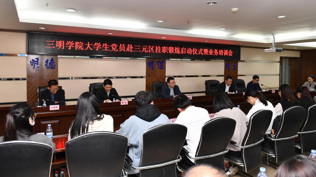 3月8日上午,yl6809永利官网举行大学生党员赴三元区挂职锻炼启动仪式暨业务培训会。yl6809永利官网党委副书记廖景榕,三明市三元区委组织部部长陈一龙出席会议。